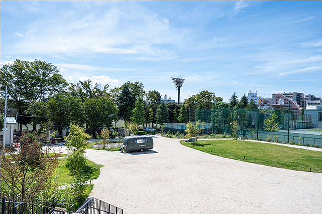 校庭跡地の気持ちよい空間がお出迎え