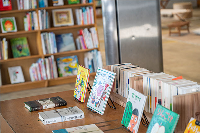 2階の書籍販売スペース。捨てられるはずだった本が販売されている。