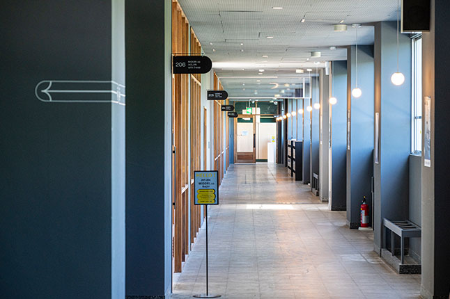 オフィススペースにはスタイリッシュな廊下が続いている。