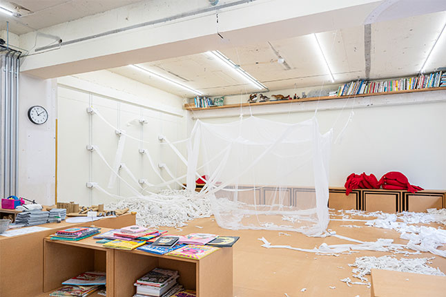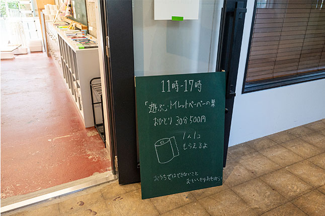 施設内には、子どもを対象とした場所や事業もあります。屋内遊び場の「PLAY! SETAGAYA(プレイ!セタガヤ)」では、子どもの創造性を大切にしながら、のびのびと遊べる場所を提供しています。訪れたときは、トイレットペーペーで自由に遊ぶ「トイレットペーパーの巣」という人気企画が実施されていました。一人一つのトイレットペーパーを使って、体に巻いたり、投げたり、ちぎったり自由に遊べます。遊んだトイレットペーパーはそのまま、次の子どもたちの遊びにも使われていきます。思いっきり遊び、さらにその自分の遊んだ跡がほかの子どもの遊びにもつながっていくという、家庭ではできそうでできない遊びを楽しめます。