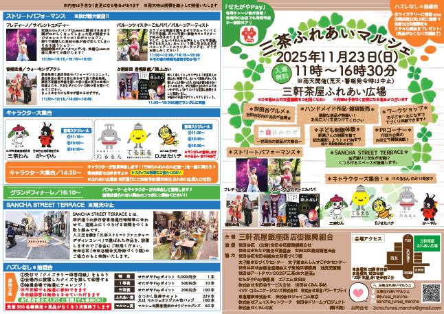 世田谷区世田谷総合支所街づくり課・太子堂まちづくりセンター・太子堂あんしんすこやかセンター・世田谷区社会福祉協議会太子堂地区事務局・池尻児童館・世田谷アートタウン2025『三茶de大道芸』・せたがやPay 事務局・エフエム世田谷・株式会社世田谷サービス公社・世田谷くみん手帖・イッツコミュニケーションズ株式会社・株式会社東急パワーサプライ・東急電鉄株式会社・株式会社ジェイコム東京・株式会社フェイスネットワーク・世田谷ドリームプロジェクト・株式会社くらしの友(順不同)