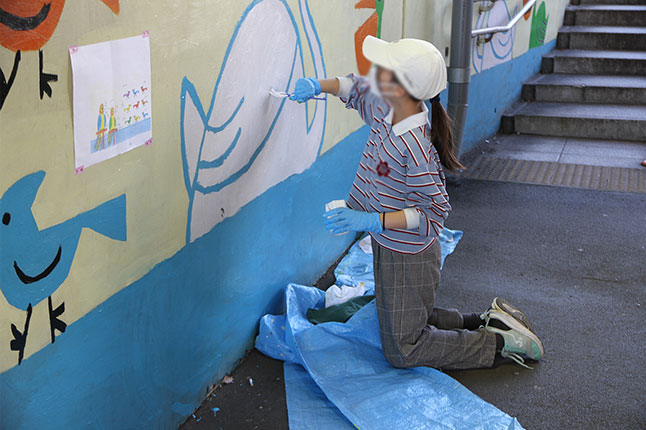 メンテナンス活動の参加者達にとって、日々の通勤や通学時に目にする壁は、単なる通り道ではなく、思い出深い、自慢の場所になります。