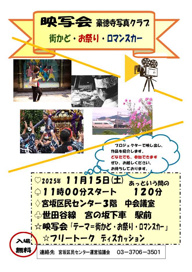 - 宮坂区民センター 豪徳寺写真クラブ・映写会