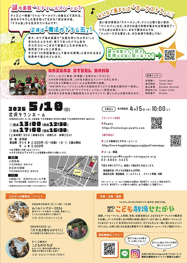 - 北沢タウンホール こども劇場せたがや「ワイワイ スティールパンコンサート」開催