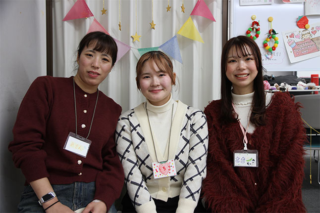 さきさん、いちごさん、れもんさんの三人は、あいりす に関わる中で、自分たちの成長を感じているといいます。たとえば、場の状況を読みながら動く力や、目上の人と無理なく会話できる話し方、家族や友人以外の人とも落ち着いてコミュニケーションできる自信が身についてきたと語っていました。また、心理学の授業で学んだ傾聴や非言語的コミュニケーションを実践することで、利用者が安心して来室し、自分から話しかけてくれたり、私たちの来室を楽しみにしてくれたりする姿に触れるたび、大きなやりがいを感じるといいます。
