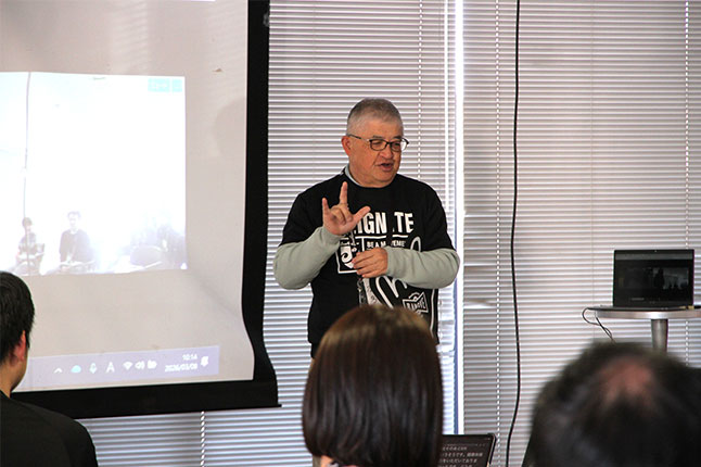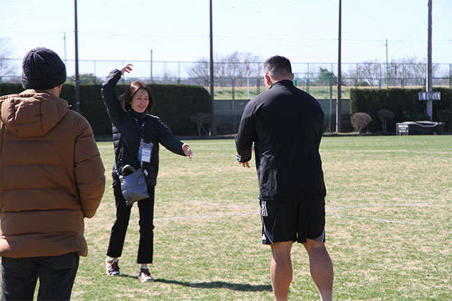 グラウンドではボールパスを体験。ロッカールームでは、タンバイ・マットソンヘッドコーチが登場。チームが成長を続けている理由として、「どうなりたいか」を明確にし、「そのために今何をするか」を選手一人ひとりが理解している点を挙げました。 クラブがホームタウンと共に歩もうとする姿勢にも触れられ、参加者にとっては普段聞くことのない貴重な時間となりました。